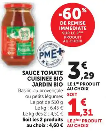 Actuellement en offre chez Hyper U : Sauce tomate cuisinee bio jardin bio ✅ Valable du 17-02 au 1-03.