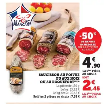 Saucisson au poivre ou aux noix ou au roquefort offres et promotions en ligne chez Hyper U