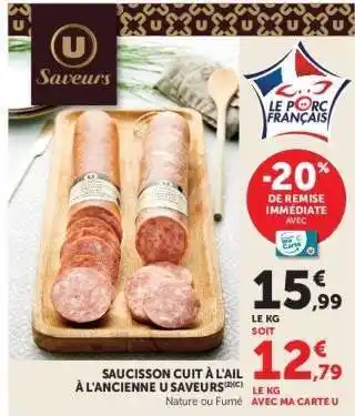 Offre Saucisson cuit à l'ail à l'ancienne U Saveurs chez Hyper U