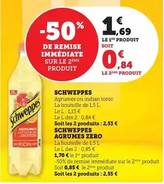 Schweppes - agrumes ou indian tonic offres et promotions en ligne chez Hyper U