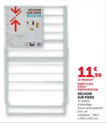 Le prix de l'offre Sechoir sur pieds se trouve également en haut de la page, ainsi que la date à laquelle l'offre est disponible. Vous pouvez également vérifier les prix dans le Catalogue Hyper U actuel ou sur le site Internet de Hyper U. Les offres vous permettent d'acheter les produits Hyper U au prix le plus bas.