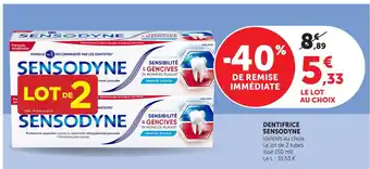 Actuellement, Sensodyne dentifrice est en promotion chez Hyper U. Toutes les informations utiles comme le prix, les conditions et la durée de validité sont affichées sur cette page. Consultez également les promotions similaires pour Sensodyne dentifrice, afin de faire le meilleur choix. La promo Sensodyne dentifrice est valable du 08-04-2026 au 19-04-2026. Si elle est expirée, regardez les autres offres équivalentes. Vous pouvez aussi suivre cette catégorie de produit pour être alerté lorsqu’une nouvelle promotion Sensodyne dentifrice apparaît chez Hyper U.Questions fréquemment posées au sujet de Sensodyne dentifrice