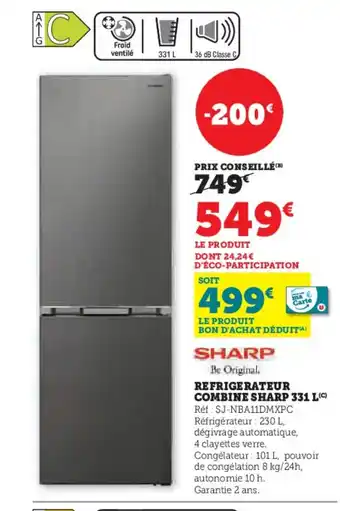 SHARAP Refrigerateur combine offres et promotions en ligne chez Hyper U