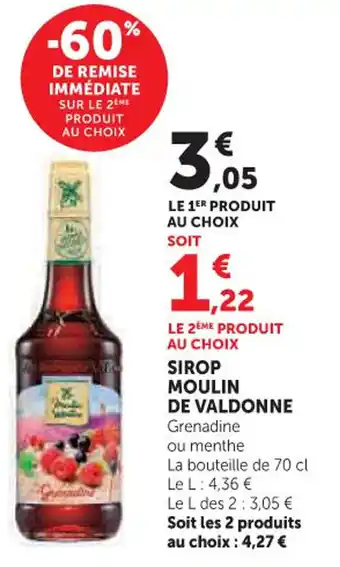 Actuellement en offre chez Hyper U : Sirop moulin de valdonne ✅ Valable du 24-02 au 8-03.