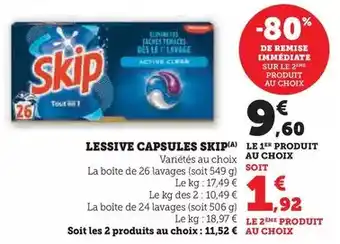 Actuellement en offre chez Hyper U : Skip - lessive capsules ✅ Valable du 10-02 au 22-02.