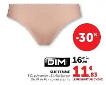 L'offre est disponible dans plusieurs magasins, vérifiez tous les produits pour obtenir le Slip femme le moins cher. Si vous souhaitez savoir si l'article est en vente avec une plus grosse remise dans un autre magasin, consultez la catégorie 'Supermarché'. Ces offres pourraient aussi vous intéresser : SLIP FEMME GRANDE TAILLE, Tex slip femme & Dim slip femme.