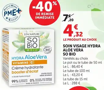 Actuellement en offre chez Hyper U : So bio soin visage hydra aloe vera ✅ Valable du 8-04 au 19-04.