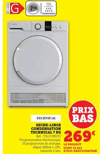 Le prix de l'offre Technical seche-linge condensation technical 7 kg se trouve également en haut de la page, ainsi que la date à laquelle l'offre est disponible. Vous pouvez également vérifier les prix dans le Catalogue Hyper U actuel ou sur le site Internet de Hyper U. Les offres vous permettent d'acheter les produits Hyper U au prix le plus bas.