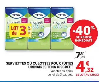 Tena discreet serviettes ou culottes pour fuites urinaires : offres et promos Hyper U à découvrir
