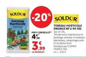TERREAU HORTICOLE ENGRAIS NFU 44-551 : offres et promos Hyper U à découvrir