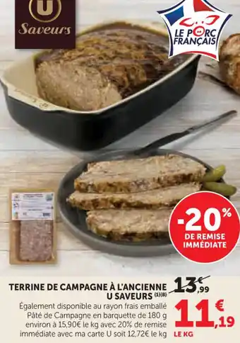 Terrine de campagne à l'ancienne u saveurs offres et promotions en ligne chez Hyper U