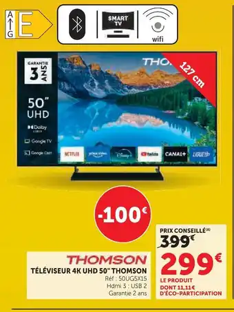 Offre Thomson téléviseur 4k uhd 50 chez Hyper U
