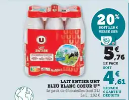 | Lait entier uht bleu blanc coeur u 3 l | Hyper U | 20% EN € CARTE U | 20 octobre 2025 | 30 novembre 2025 | |||