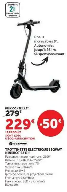 Actuellement en offre chez Hyper U : TROTTINETTE ELECTRIQUE SEGWAY-NINEBOT E2 E II ✅ Valable du 24-03 au 19-04.