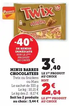 Le prix de l'offre Twix - minis barres chocolatees se trouve également en haut de la page, ainsi que la date à laquelle l'offre est disponible. Vous pouvez également vérifier les prix dans le Catalogue Hyper U actuel ou sur le site Internet de Hyper U. Les offres vous permettent d'acheter les produits Hyper U au prix le plus bas.