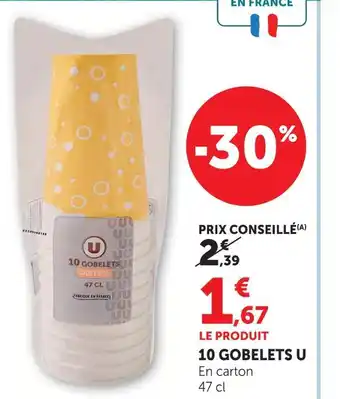 Actuellement en offre chez Hyper U : U 10 gobelets ✅ Valable du 28-04 au 24-05.