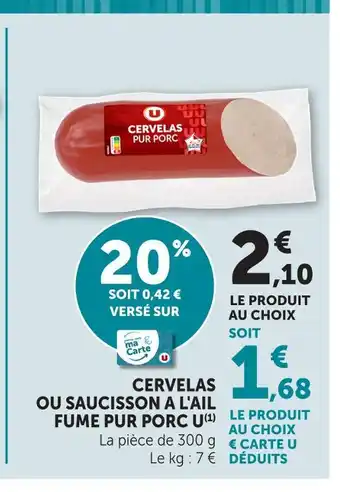 Actuellement en offre chez Hyper U : U cervelas ou saucisson a l'ail fume pur porc ✅ Valable du 8-04 au 19-04.