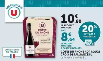 Actuellement en offre chez Hyper U : U - cotes du rhone aop rouge croix des alliances ✅ Valable du 24-02 au 8-03.
