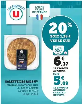L'offre est disponible dans plusieurs magasins, vérifiez tous les produits pour obtenir le U - galette des rois le moins cher. Si vous souhaitez savoir si l'article est en vente avec une plus grosse remise dans un autre magasin, consultez la catégorie 'Supermarché'. Ces offres pourraient aussi vous intéresser : U galette des rois, U galette des rois & Galette des rois u.