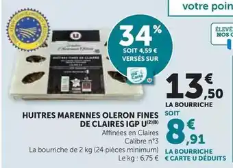 Offre U - huitres marennes oleron fines de claires igp chez Hyper U