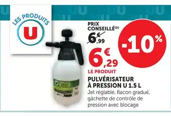 En plus de l'offre U pulvérisateur à pression, Hyper U propose une large gamme de produits. Consultez le Catalogue Hyper U hebdomadaire pour découvrir les meilleures offres et promotions. En plus de U pulvérisateur à pression, il y a aussi : U pulvérisateur à pression 1.5 l, Pulvérisateur à pression U 1.5 L & Pulvérisateur à pression 4 L.