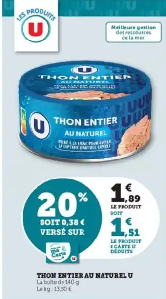 Actuellement en offre chez Hyper U : U Thon entier au nature ✅ Valable du 20-01 au 1-02.