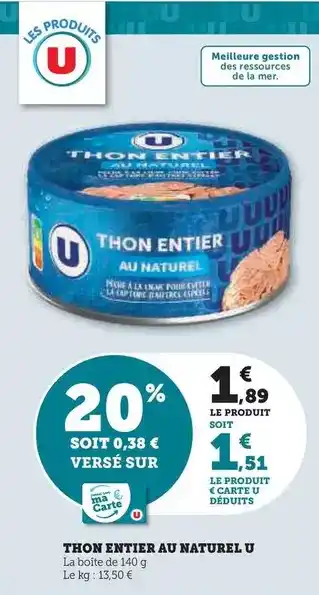 Actuellement en offre chez Hyper U : U - thon entier au naturel ✅ Valable du 20-01 au 1-02.