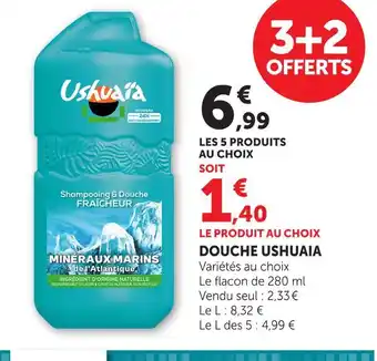 En plus de l'offre Ushuaia douche, Hyper U propose une large gamme de produits. Consultez le Catalogue Hyper U hebdomadaire pour découvrir les meilleures offres et promotions. En plus de Ushuaia douche, il y a aussi : Ushuaia douche, USHUAÏA Gel douche ylang & Ushuaïa shampooing et douche minéraux marins.