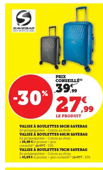 Actuellement en offre chez Hyper U : Valise à roulettes savebag ✅ Valable du 27-01 au 8-02.