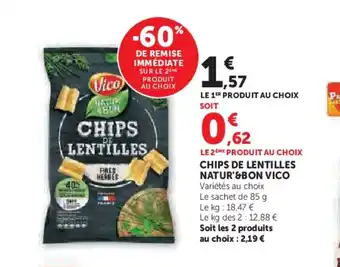 Le prix de l'offre VICO Chips de lentilles natur'&bon se trouve également en haut de la page, ainsi que la date à laquelle l'offre est disponible. Vous pouvez également vérifier les prix dans le Catalogue Hyper U actuel ou sur le site Internet de Hyper U. Les offres vous permettent d'acheter les produits Hyper U au prix le plus bas.