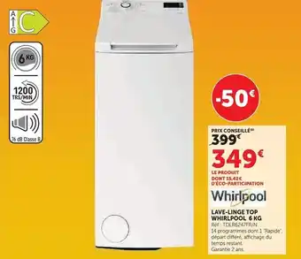 Offre Whirlpool lave-linge top 6 kg chez Hyper U