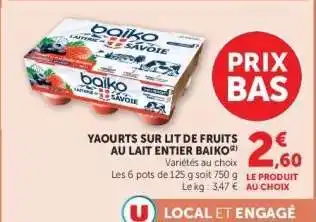 Offre Yaourts sur lit de fruits au lait entier Baïko chez Hyper U