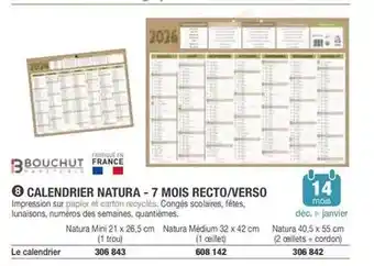 Bouchut - calendrier natura-7 mois recto/verso offres et promotions en ligne chez Hyperburo