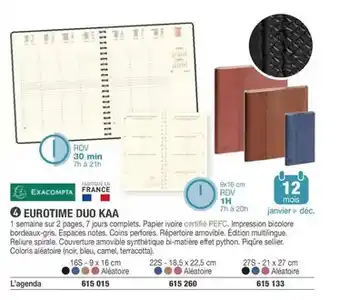 Actuellement en offre chez Hyperburo : Exacompta - eurotime duo kaa ✅ Valable du 1-01 au 31-12.