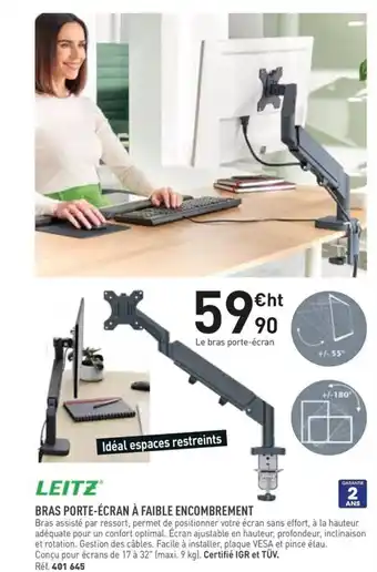 LEITZ Bras porte-écran à faible encombrement offres et promotions en ligne chez Hyperburo
