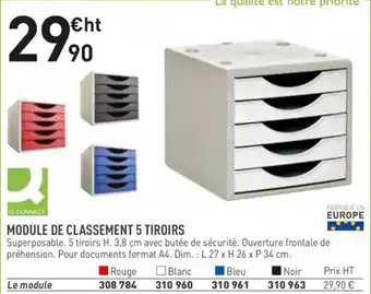 Module de classement 5 tiroirs offres et promotions en ligne chez Hyperburo