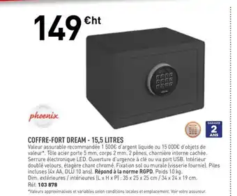 Actuellement en offre chez Hyperburo : PHOENIX Coffre-fort dream - 15,5 litres ✅ Valable du 3-02 au 28-02.