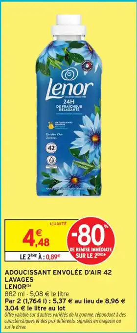 Actuellement en offre chez Intermarché Contact : Adoucissant envolée d'air lenor ✅ Valable du 20-01 au 1-02.