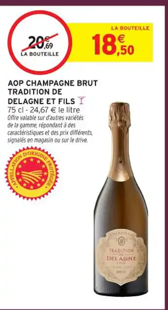 Actuellement en offre chez Intermarché Contact : Aop champagne brut tradition de delagne et fils ✅ Valable du 16-12 au 28-12.