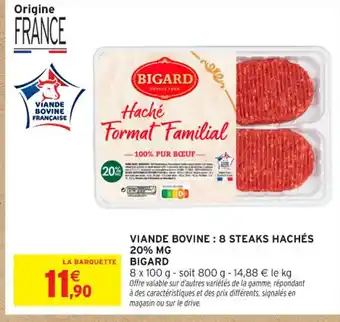 BIGARD Viande bovine : 8 steaks hachés 20% mg offres et promotions en ligne chez Intermarché Contact
