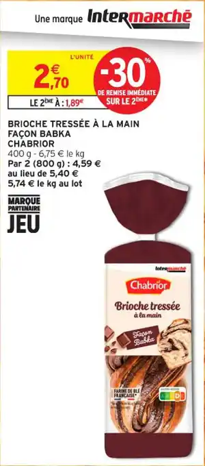 Le prix de l'offre Brioche tressée à la main façon babka chabrior se trouve également en haut de la page, ainsi que la date à laquelle l'offre est disponible. Vous pouvez également vérifier les prix dans le Catalogue Intermarché Contact actuel ou sur le site Internet de Intermarché Contact. Les offres vous permettent d'acheter les produits Intermarché Contact au prix le plus bas.