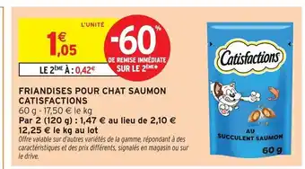 Actuellement en offre chez Intermarché Contact : CATISFACTIONS Friandises pour chat saumon ✅ Valable du 14-04 au 26-04.