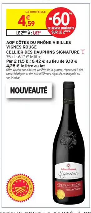 CELLIER DES DAUPHINS SIGNATURE Aop côtes du rhône vieilles vignes rouge : offres et promos Intermarché Contact à découvrir