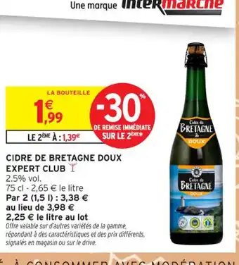 Actuellement en offre chez Intermarché Contact : Cidre de bretagne doux expert club ✅ Valable du 30-12 au 11-01.