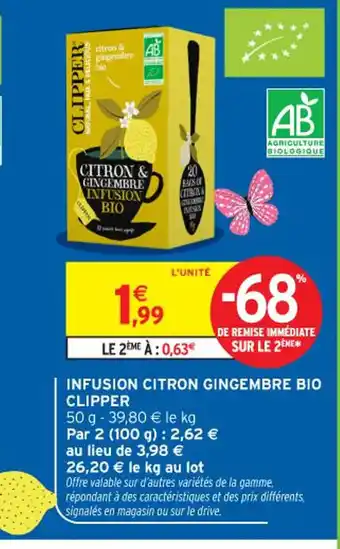 CLIPPER Infusion citron gingembre bio : offres et promos Intermarché Contact à découvrir