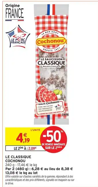 En plus de l'offre COCHONOU Le classique, Intermarché Contact propose une large gamme de produits. Consultez le Catalogue Intermarché Contact hebdomadaire pour découvrir les meilleures offres et promotions. En plus de COCHONOU Le classique, il y a aussi : LE CLASSIQUE COCHONOU, Cochonou le saucisson classique & Cochonou le saucisson classique.