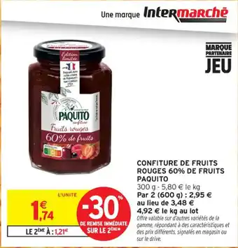 Confiture de fruits rouges 60% de fruits paquito : offres et promos Intermarché Contact à découvrir