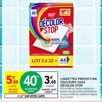 Actuellement en offre chez Intermarché Contact : DECOLOR STOP Lingettes protection couleur 2x22 ✅ Valable du 30-12 au 11-01.