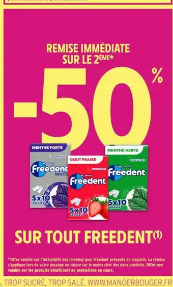 L'offre est disponible dans plusieurs magasins, vérifiez tous les produits pour obtenir le FREEDENT Sur tout le moins cher. Si vous souhaitez savoir si l'article est en vente avec une plus grosse remise dans un autre magasin, consultez la catégorie 'Supermarché'. Ces offres pourraient aussi vous intéresser : FREEDENT Sur tout, HOLLYWOOD Sur tout & YOOJI Sur tout.