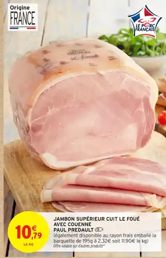 Actuellement en offre chez Intermarché Contact : Jambon supérieur cuit le foué avec couenne paul predault ✅ Valable du 20-01 au 1-02.